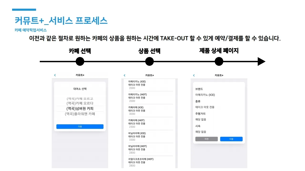 커뮤트 서비스는 네이버 예약, 카카오톡 채널 등의 활용도 높은 서비스로 제공하지만, 주요 고객인 학생들을 위한 자체적인 간편 APP이 필요하다고 생각했습니다. 학교 주변의 학생들의 이동이 잦은 Hot Spot을 주요 지점으로 등록하고 모빌리티를 편하게 이용할 수 있는 APP을 직접 기획하였습니다.