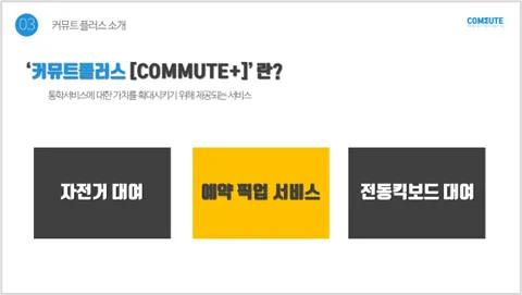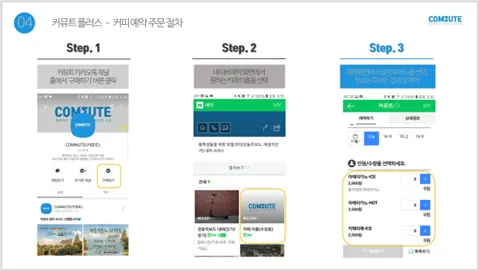 통학 중에 학생들이 미리 음료를 주문하고, 음료를 받는 대기 시간이 필요 없이 바로 테이크 아웃이 가능한 ‘스마트 오더’ 서비스를 기획하였습니다. 커뮤트+ 서비스를 통해 사용자는 기존의 단순한 이동 경험을 넘어서 이동 중에 일어나는 모든 경험을 만족할 수 있습니다.
